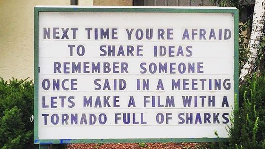 Vous avez définitivement tout à gagner à communiquer sur vos idées, vos sentiments et à mieux vous exprimer ! La prochaine fois que vous avez peur de partager vos idées, rappelez vous cette histoire vraie. Lors d’une réunion, une personne a déclaré : « Faisons un film avec une tornade remplie de requins ». Le film est véritablement sorti en salle et a été suivi de 5 suites.
